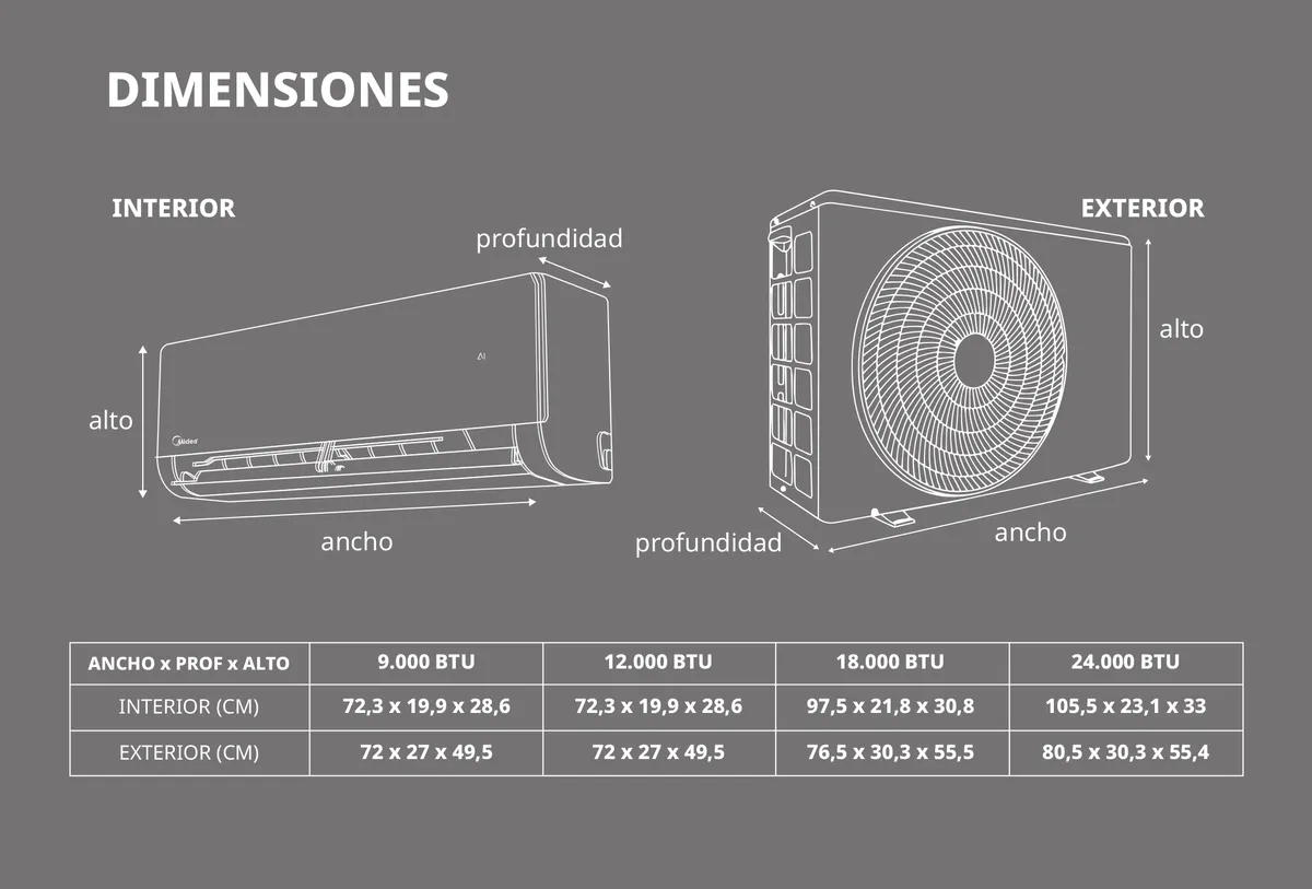 • El split Midea permite climatizar tu hogar todo el año de manera eficiente segura y limpia.